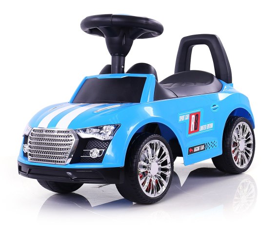 Sportowe autko może posłużyć dziecku jako pierwszy pojazd do jeżdżenia z prawdziwą kierownicą i klaksonem, jak również pchacz z otwieranym schowkiem na zabawki (mały bagażnik).